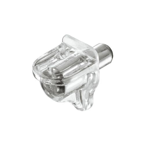 HafeleIn stockFinish: Transparent with nickel plated pin Application: For glass shelves Installation: Plug in, for Ø 5 mm hole For shelf thickness: 5 mm Materia...