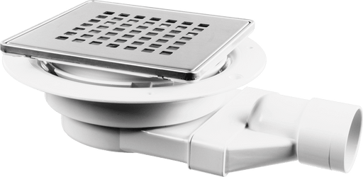 McAlpine150mm square stainless steel tile with silicone non-return valve and securing screws - ABS solvent weld connection This McAlpine stainless steel ti...