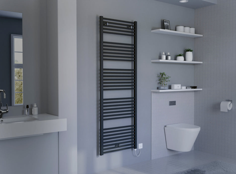 This 1728mm high and 600mm wide Eucotherm Primo Towel Radiator is designed to provide efficient home-heating with a stylish textured anthracite finish. Ideal for bathrooms, the electric towel radiator is vertical for convenient hanging. Enjoy cozy warmth and contemporary design.