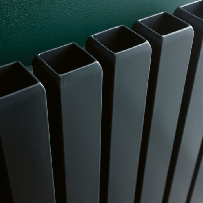 • This sleek Eucotherm Vulkan Square Tube radiator is the perfect complement to any living space with its anthracite finish. Its dimensions (1800 H X 435 W) make it ideal for small rooms, while its single vertical tubing offers exceptional heat output.