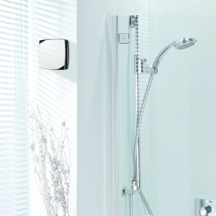 There are three different models in the range: Safety Extra Low Voltage (SELV), with adjustable timer, or with adjustable timer and a clever humidity sensor that activates the fan automatically, before condensation has time to build. This versatile unit can be ceiling or wall-mounted and comes in a choice of three finishes: White, Chrome or Matt Silver.