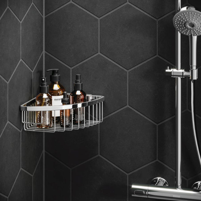 HiB Easy Lift Corner Shower Basket - Chrome - ACSBCH05