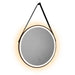 Wall-mounted mirror with decorative strap and wall fitting support