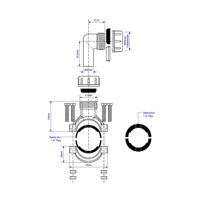 • Suits 1¼"/1½" Pipe to BS EN 1451-1:2017 and BS EN 1329-1:2020