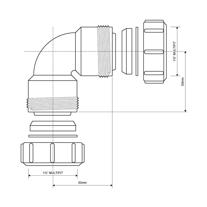 The McAlpine 1¼" 90° Multifit Bend is a high-quality compression bend designed for easy installation and secure attachment. Made from strong plastic materials, this bend is perfect for a variety of multifit installations, allowing for a secure connection with minimal fuss. It's the ideal solution for a reliable seal and a long-lasting connection.