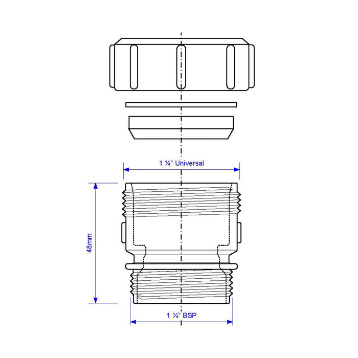 This straight connector from McAlpine is strong, durable, and meets the highest standards of quality. Made from 1¼" BSP Male x Universal, it offers a secure fit for every application. Keep your home connected with this reliable connector.