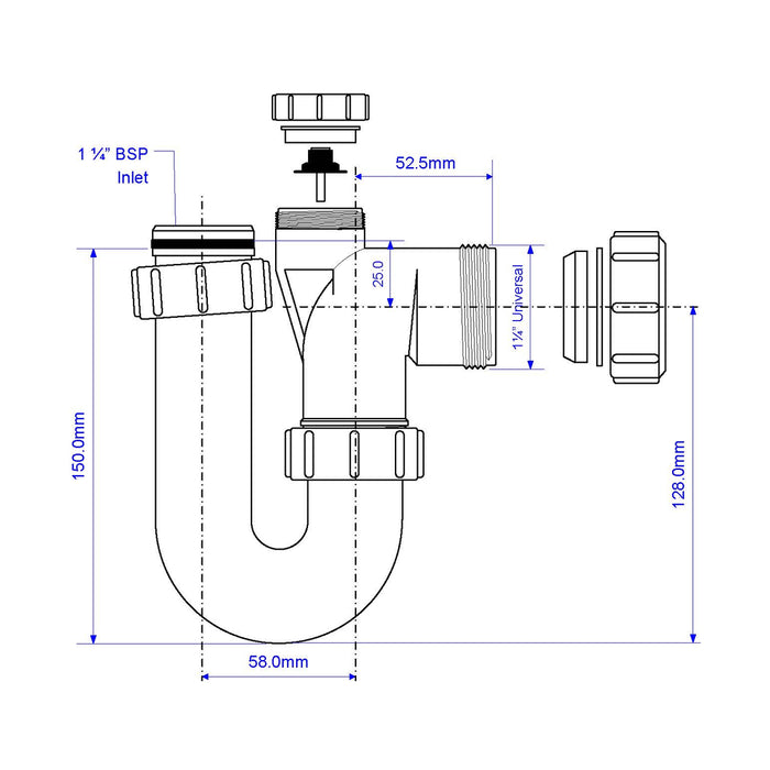 75mm Water Seal Tubular Swivel Anti-Syphon (Silentrap) 'P' Trap with Universal Outlet