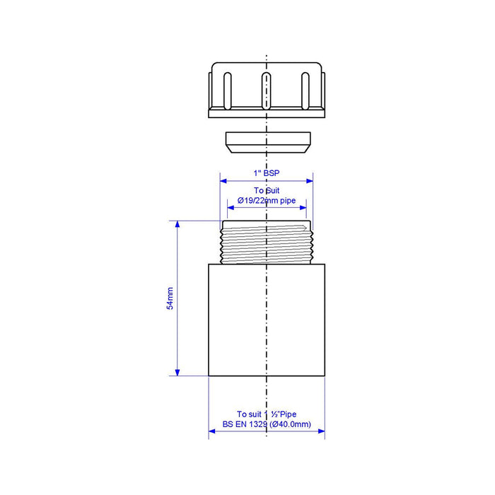 Reducer 1½" ABS Plain Tail to BS EN 1329-1:2000 x 19/23mm Universal Connection