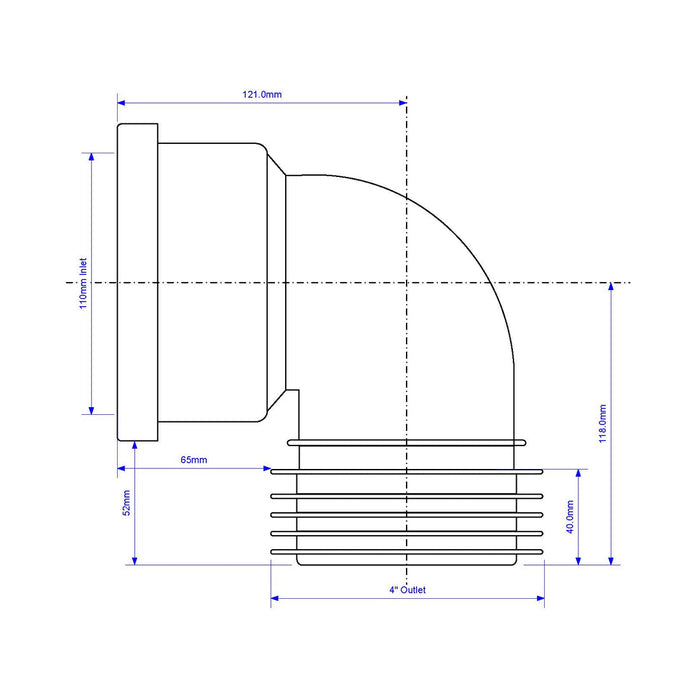 4"/110mm 90° Bend Drain Connector with 'O' Seal Socket to fit 4"/110mmØ pipe to BS 4514