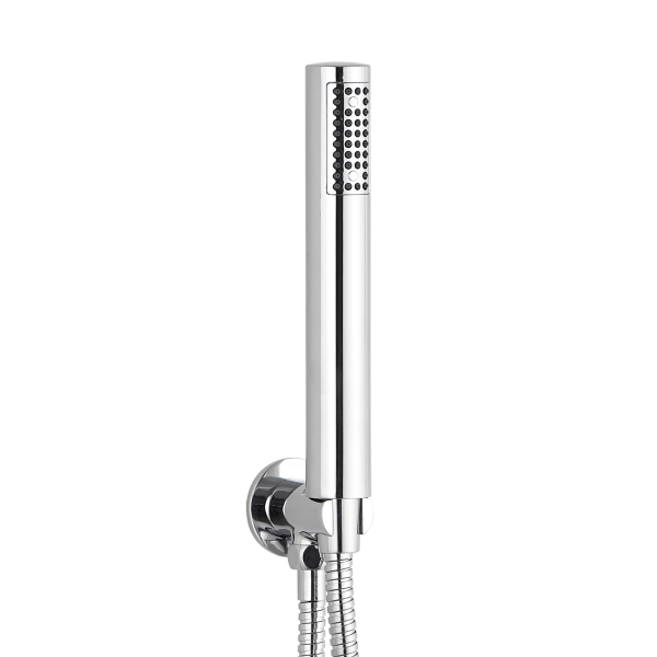 This Round Brass Wall Outlet Elbow with Bracket, Hose & Handset - TIS0072 is a convenient and reliable addition to any bathroom. Crafted from high-quality brass, it ensures durability and longevity. The rounded design adds a sleek touch while the included bracket, hose, and handset provide added functionality. Upgrade your shower experience with this expertly crafted wall outlet elbow.
