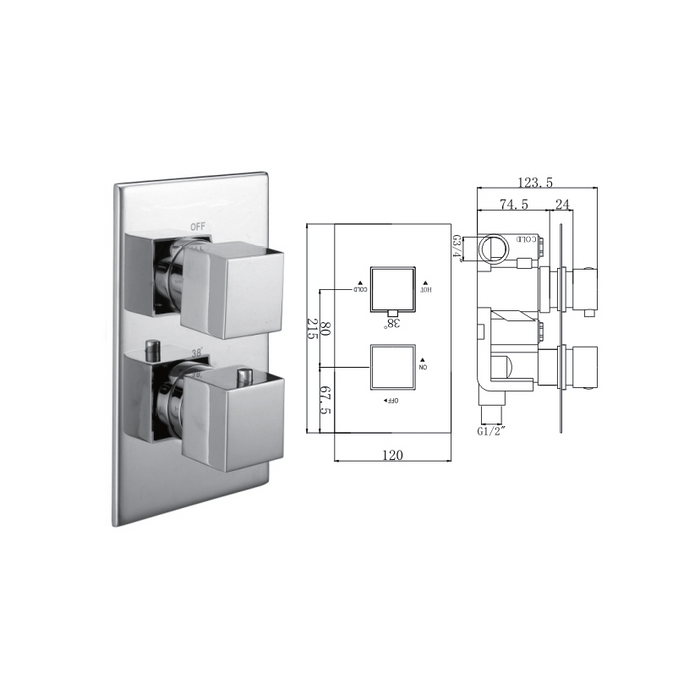 Ruby Concealed Thermostatic Shower Valve, 2 Handle 1 Outlet - 029.36.004