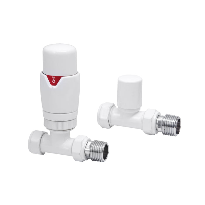 Straight Thermostatic Radiator Valve Pack Pair White - 69093